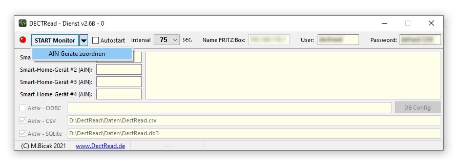 Dect!Read - DIENST starten, zur Konfiguration werden benötigt :