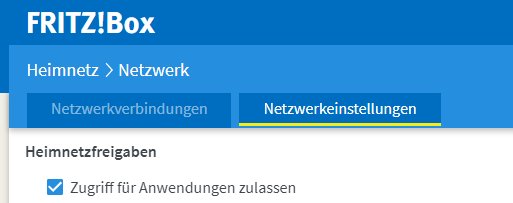 * Die Fritz!Box Option " Zugriff für Anwendungen zulassen " muss Aktiviert sein: