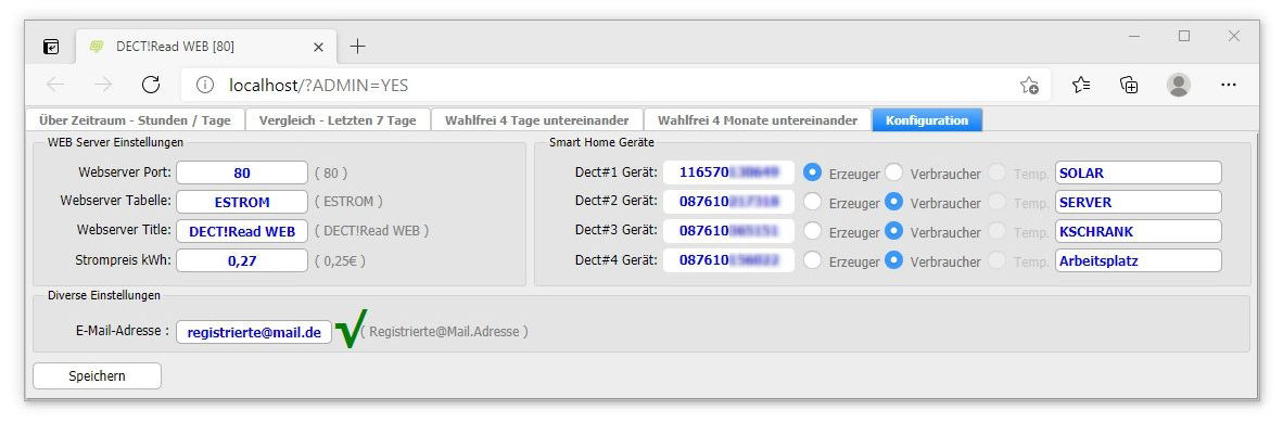 Link " DECT!Read Webseite Konfiguration ", hier zu den einzelnen DECT Geräten wählen, ob es